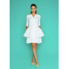 Халат приталенного силуэта. Необычный дизайн модели заключается в пышной двухъярусной юбке. Горловина имеет широкий разрез, карманы спрятаны в боковых швах.